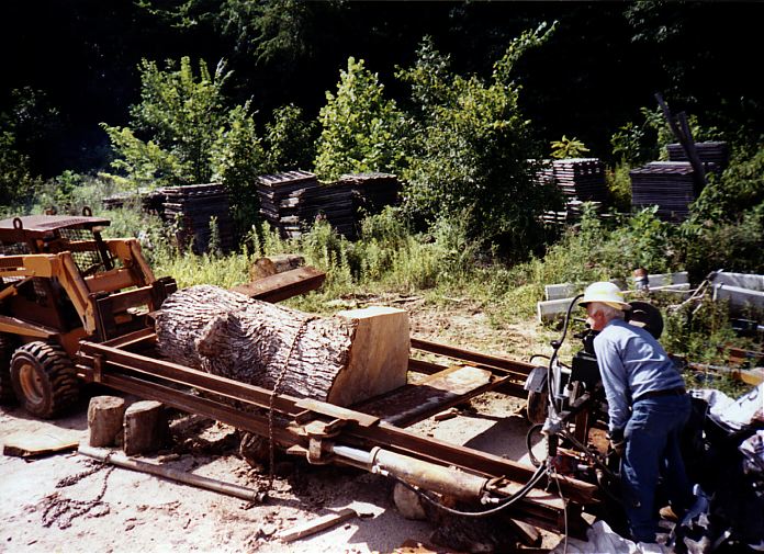 Willson runs the Mombo splitter he built while David uses Casey, the skidloader, to position a big log.