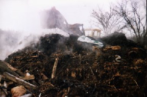 Providing that the material is biodegradable (such as grass clippings, leaves, sticks, garden clippings, undecorated Christmas trees, etc.), aeration through bulldozing turns the material into rich, black compost.