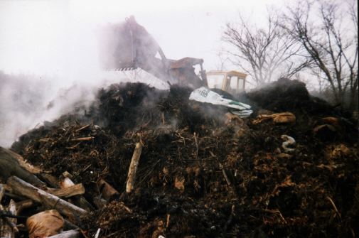 Every winter, our bulldozer, Millificent, builds a cozy nest for herself, of yardwaste and leaves.